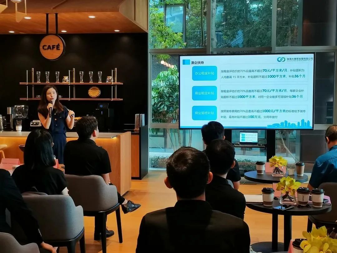 活動通過對大橫琴發展公司園區生態及服務管家體系介紹、普惠金融貸款知識小課堂、橫琴粵澳深度合作區普惠政策分享,助力新企業更快融入大橫琴Super Star“超級星”園區,也通過園區企業代表業務分享及企業間交流互動,促進企業之間的溝通了解,為企業搭建資源鏈接平臺,提升企業和人才服務團隊之間的黏性。