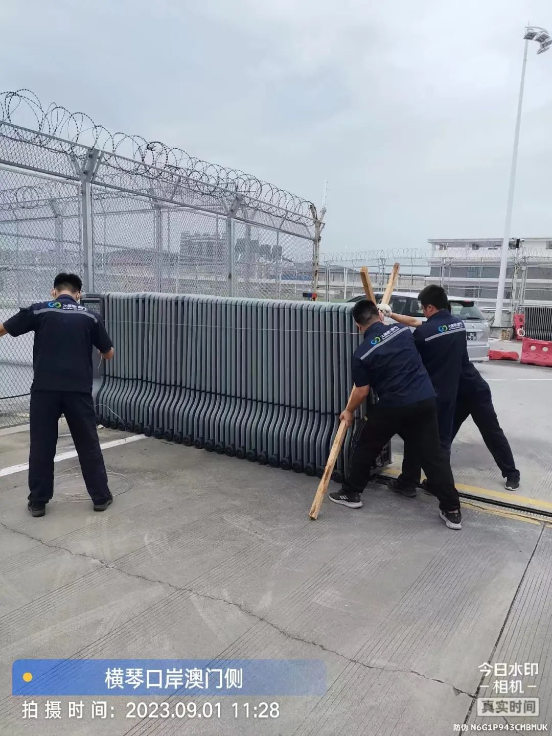 在橫琴口岸通關區域內,口岸公司還通過140多個顯示屏全天候滾動播放防御臺風“蘇拉”應急最新通知,對通關旅客進行溫馨提醒。截至目前,橫琴口岸現場所有風險點已完成排查,并且完成加固工作,轉移臨險人員100多人至口岸4樓安置。