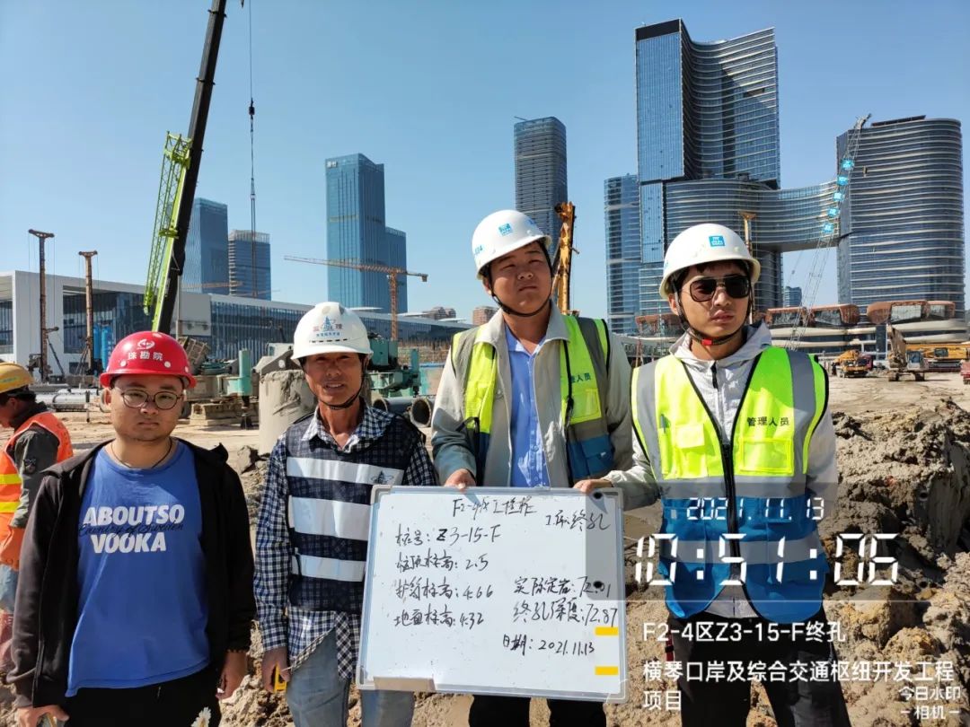 九是質量安全。成立質量管理小組,制定質量管理措施,按照公司安全管理規定,落實責任到人、層層把關,定期開展安全檢查,兼顧突擊檢查,避免安全隱患。如對項目樁基礎等重要工序,結合工程工序相關查驗標準,全過程記錄每條樁的超前鉆、鋼護筒、樁孔重要參數,并對不同數據互相比對,確保每道工序按圖施工。2021年10月起,指揮部成員輪流值班,跟進每一條樁基終孔驗收工作,并拍照留底。據統計,驗樁共安排輪值共113次。