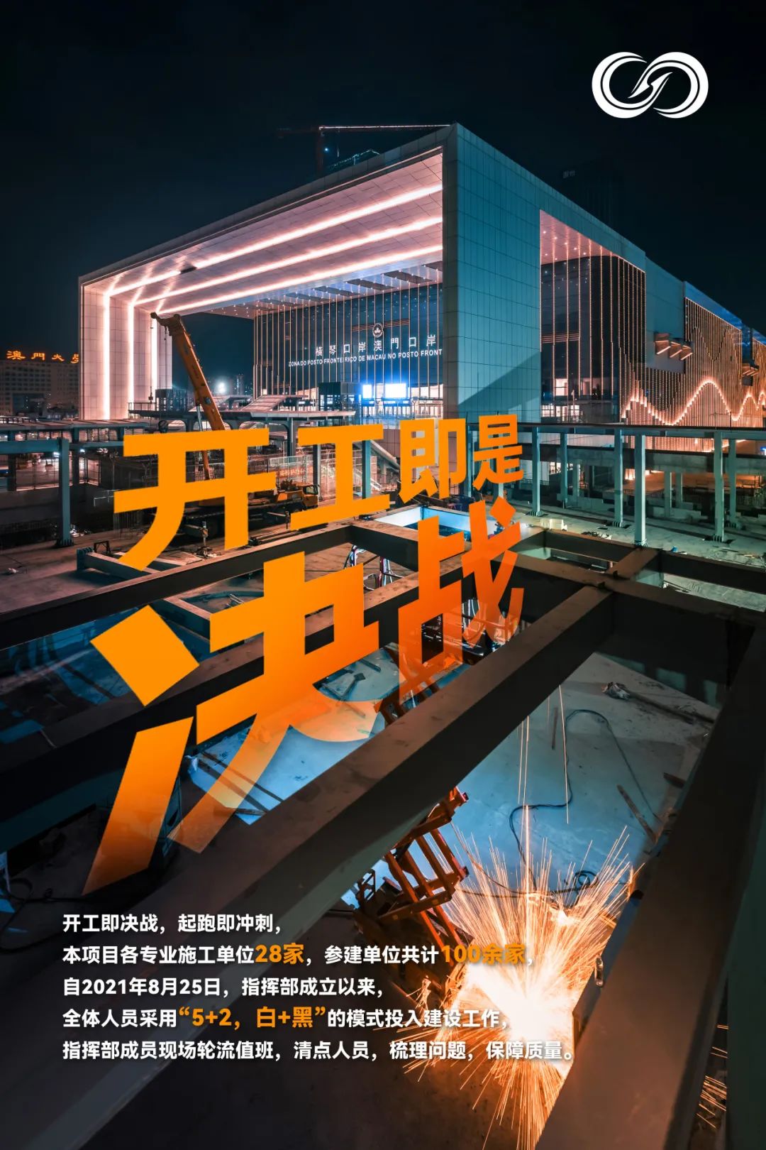 一是明確機構。2021年8月25日,大橫琴集團正式印發了《橫琴口岸及綜合交通樞紐工程建設指揮部工作方案 (試行)》,明確了指揮部運作方式、建設任務、職責劃分、機構設置等,要求調集公司“骨干力量”,遵循“全集團支持、全集團統籌、靠前指揮、專人到崗、逐步加強”的原則開展建設攻堅工作,為口岸通關部分加速建設提供了保障。