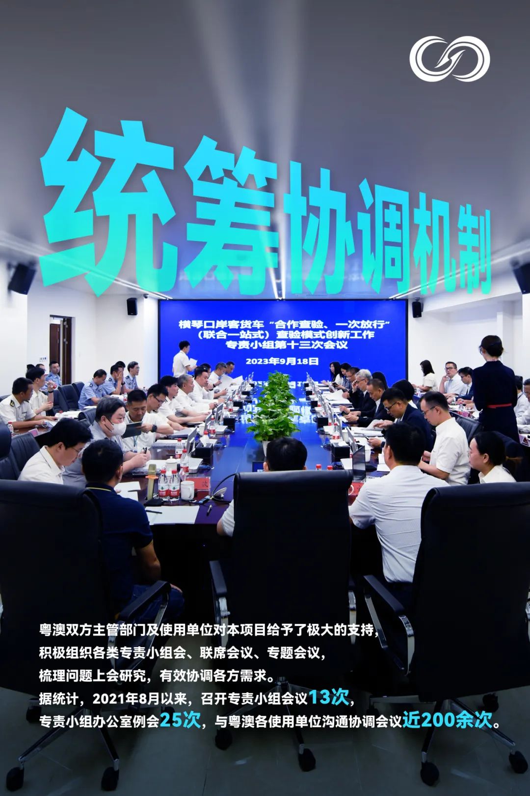 二是“一號工程”。指揮部成立以來,指揮部將橫琴口岸通關項目列為“一號”攻堅工程,要求全體工作人員提高政治意識、統一思想,錨定目標、全力以赴。橫琴口岸二期通關項目工程規模龐大、參建單位眾多,指揮部每周六定期主持召開協調工作例會,對建設過程中出現的問題進行研究討論,全力協助項目生產中的各類疑難雜癥。截至2023年9月25日,指揮部工作協調會已召開155期。