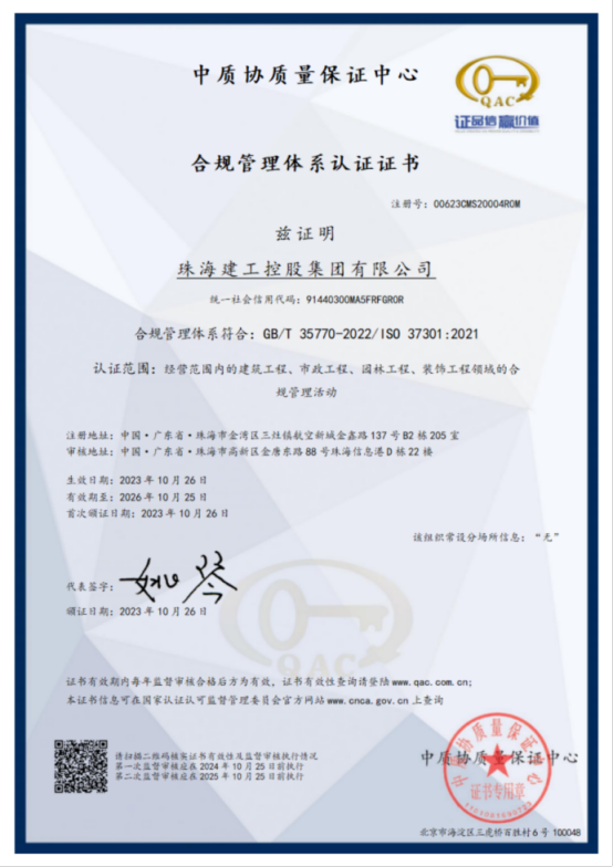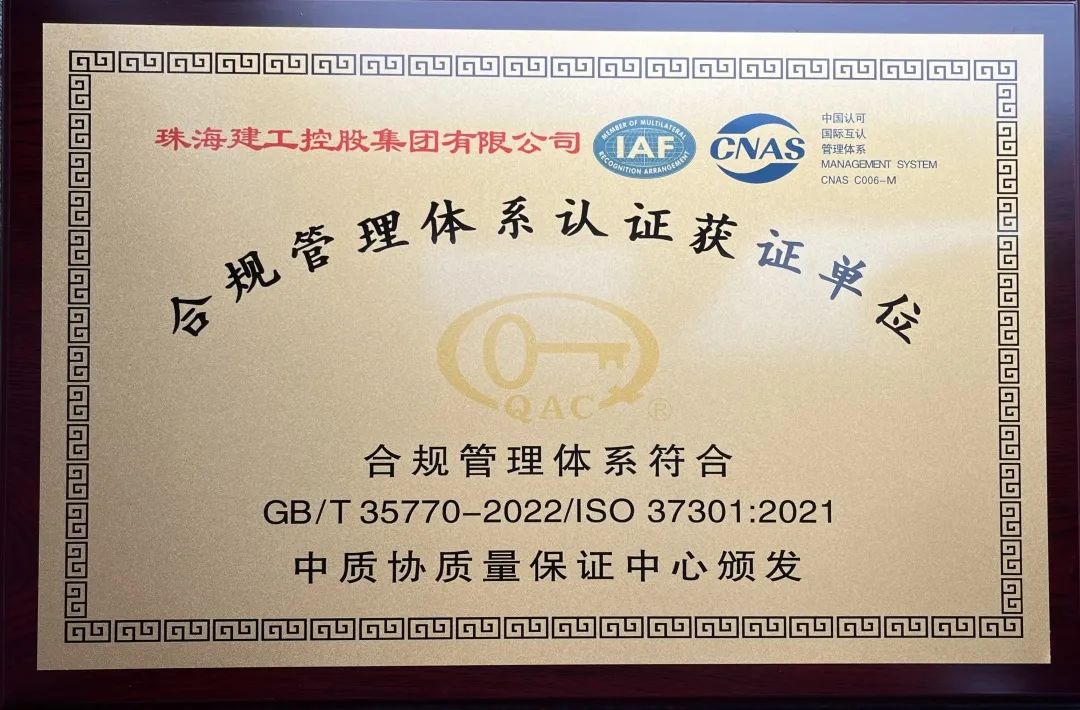 珠海建工集團將以此次成功認證為契機,切實履行法治建設第一責任人職責,以更高標準、更嚴要求,持續加強合規管理體系建設工作,同時,公司上下將全力確保合規管理體系持續有效運行,為公司高質量穩健發展提供堅實保障。