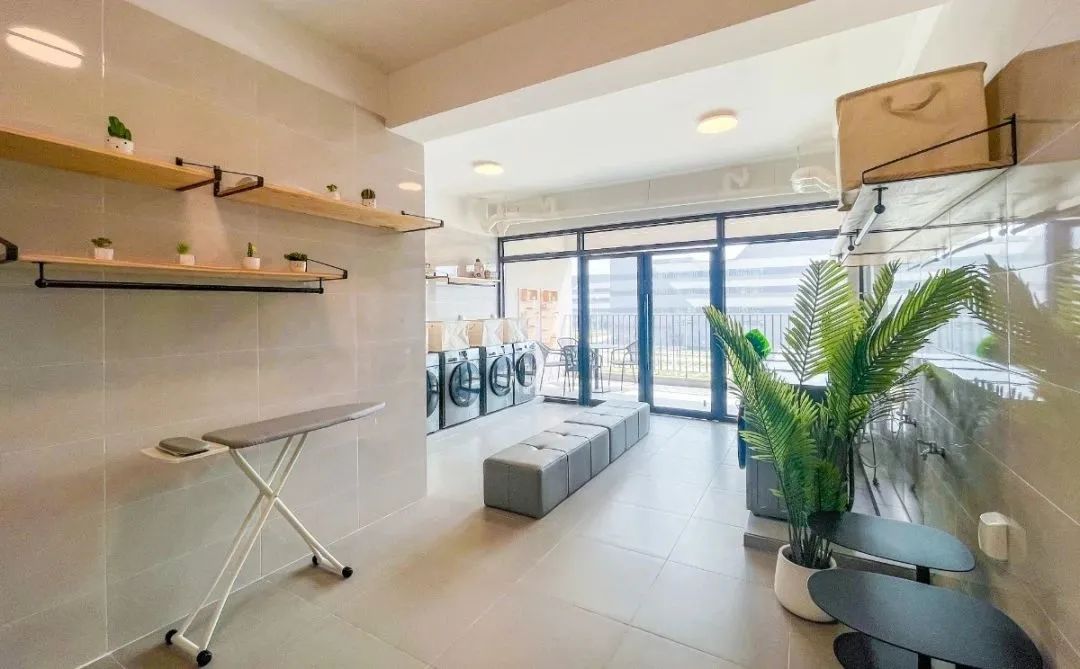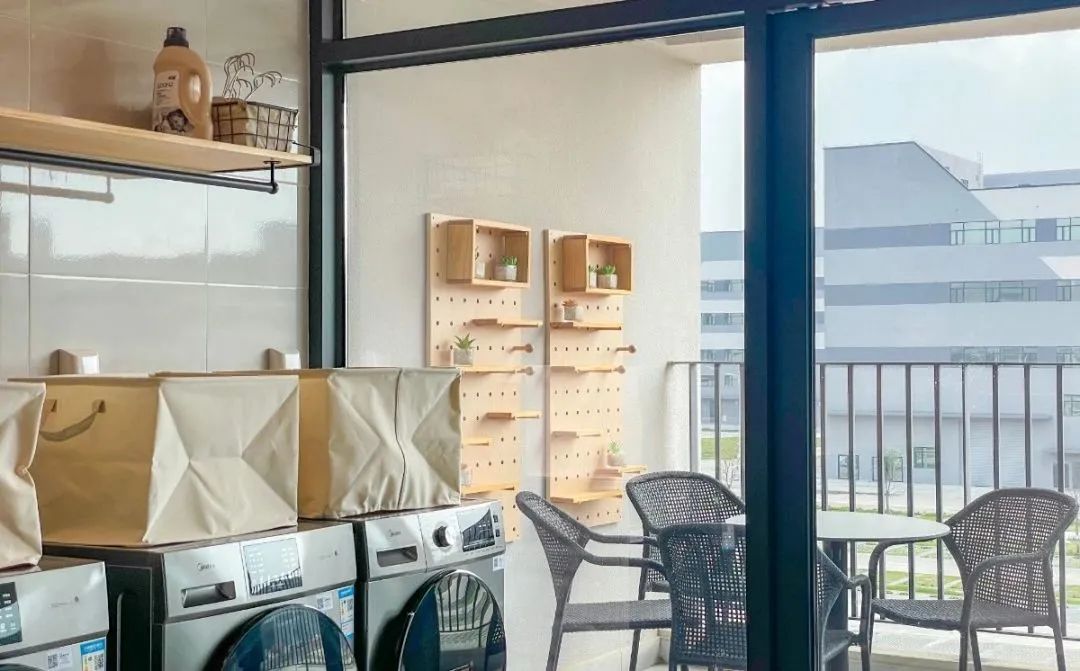 宿舍內(nèi)配備公共洗衣房,熨衣板、洗衣機、晾衣簍、洗手池等設施一應俱全。