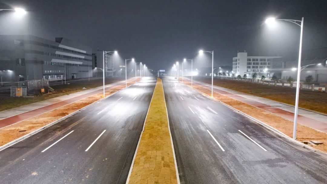 2024年1月30日,雷蛛大道中段、欣港路東西、馬山北路東西、中心西路及濱港路北段等約6公里道路按預定計劃建成通車,富山工業園二圍北片區初步形成“一大環、兩小環”交通路網,基本滿足片區內各廠區出行需求。