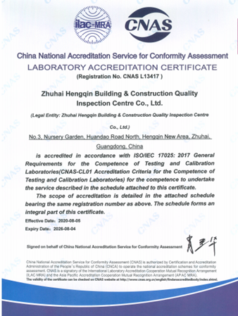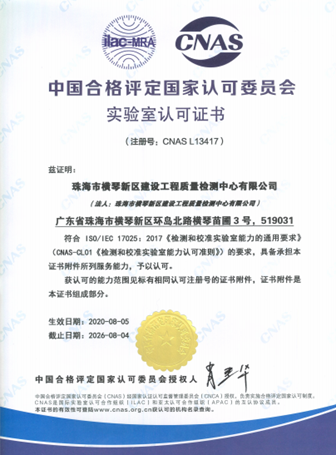 2024年5月25日至26日,由中國合格評定國家認可委員會(CNAS)委派的評審專家組一行四人,對珠海大橫琴集團有限公司(以下簡稱大橫琴集團)下屬企業珠海市橫琴新區建設工程質量檢測中心有限公司(以下簡稱橫琴檢測中心)開展CNAS實驗室認可復評審。