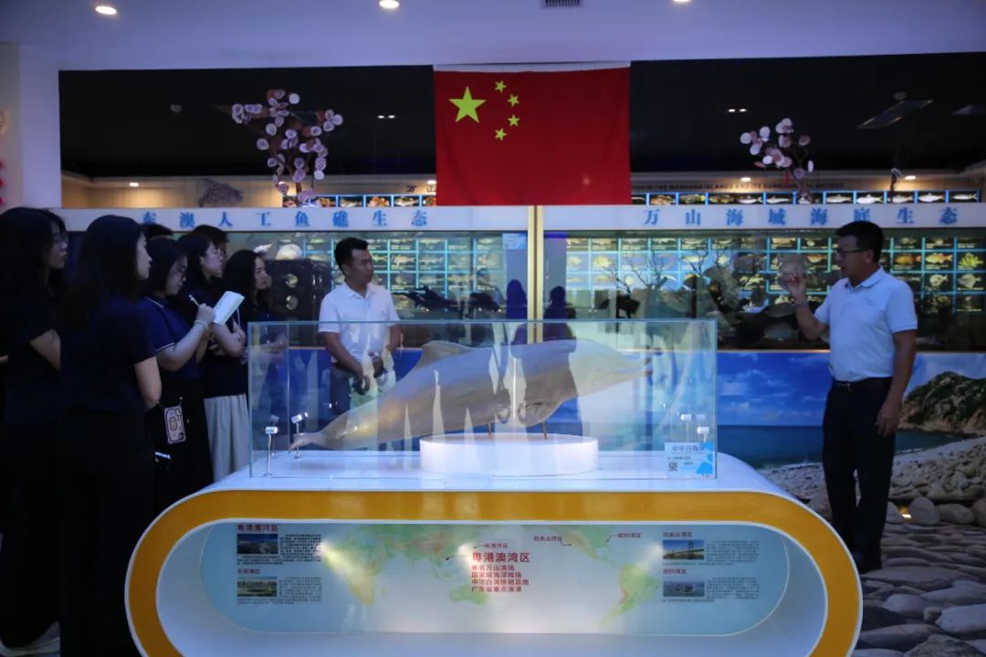萬山海洋生物科普館是珠海市首個離島海洋生物科普館。這里不僅有豐富的生態魚缸和珍貴的中華白海豚標本,還通過實景化展示,如人工魚礁和海底生態缸,生動呈現萬山群島海域的生物多樣性。揭牌儀式后,萬山海洋生物科普館館長安東為講解員志愿者們提供培訓,從科普館整體概況、海洋生物種類、保護海洋生態的意義等方面,幫助志愿者拓展海洋知識,進一步提升志愿服務能力。