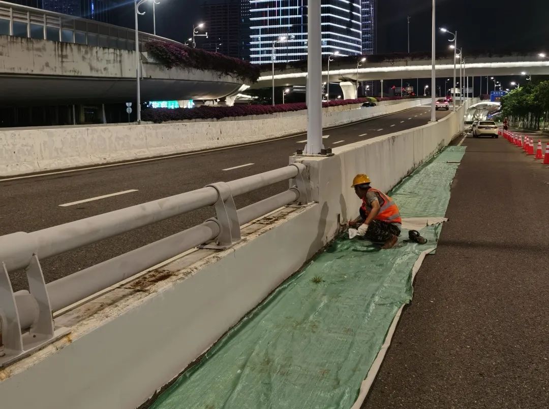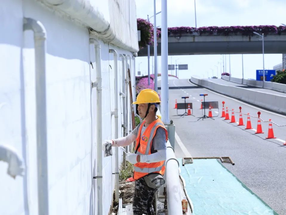 道路、橋梁作為基礎交通設施,也是城市景觀的重要組成部分。為打造靚麗舒適的出行環境,大橫琴城資在港澳大道立交主線橋及匝道、濠江路立交主線橋及匝道進行防撞墻和引橋擋墻的打磨、找平、刷漆等養護作業,施工面積達20000㎡,在美化通行環境、提升路容路貌的同時,切實消除安全隱患,提升了道路通行安全系數。
