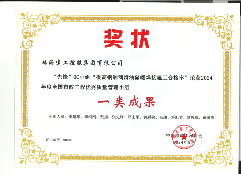 在本次QC小組活動中,珠海建工集團開展了一系列業務培訓,組織技術條線輸出了QC成果共33個課題,其中《提高鋼制潤滑油儲罐焊接施工合格率》獲得國家級一類成果;其余成果中15個課題榮獲省級優秀QC成果:2個課題榮獲省級一類成果;6個課題榮獲省級二類成果;7個課題榮獲省級三類成果;技術研發中心臨時負責人李建華榮獲優秀發布者,本次QC小組活動的優異成績,實現了公司QC成果獎在國家級獎項、省級獎項方面零的突破,為公司工程項目評優奠定了基礎。