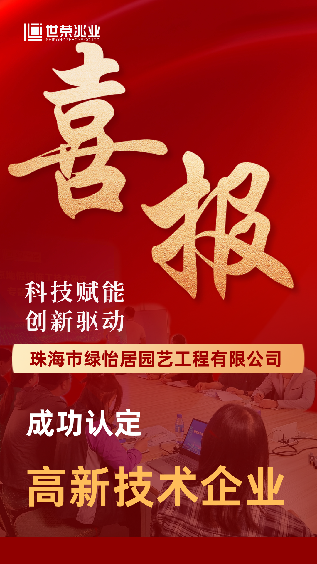 近日,大橫琴集團上市平臺廣東世榮兆業股份有限公司旗下珠海市綠怡居園藝工程有限公司成功通過高新技術企業認定。這一認證既是世榮兆業在大橫琴集團賦能下深化科技轉型的階段性成果,更是對綠怡居多年堅持技術研發的權威認可。