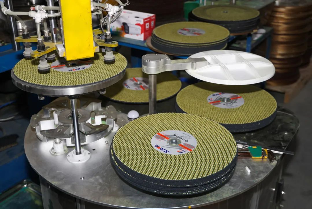 步入車間,智能化設備高效運轉,厚度1至6毫米的砂輪經過精密加工后整齊排列,即將發往全球市場。
